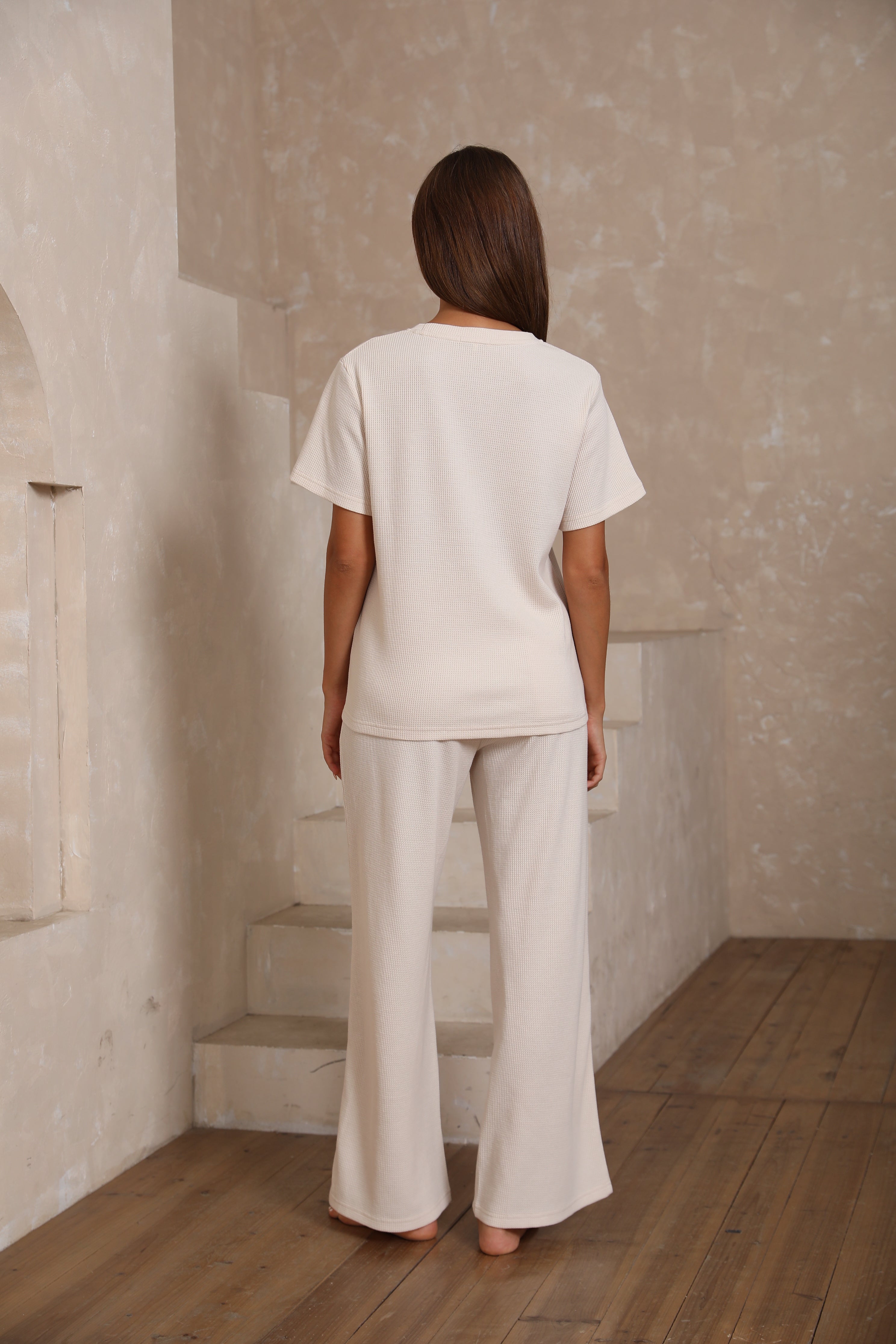 Waffled Top and Wide Legged Pant 2 Piece Set