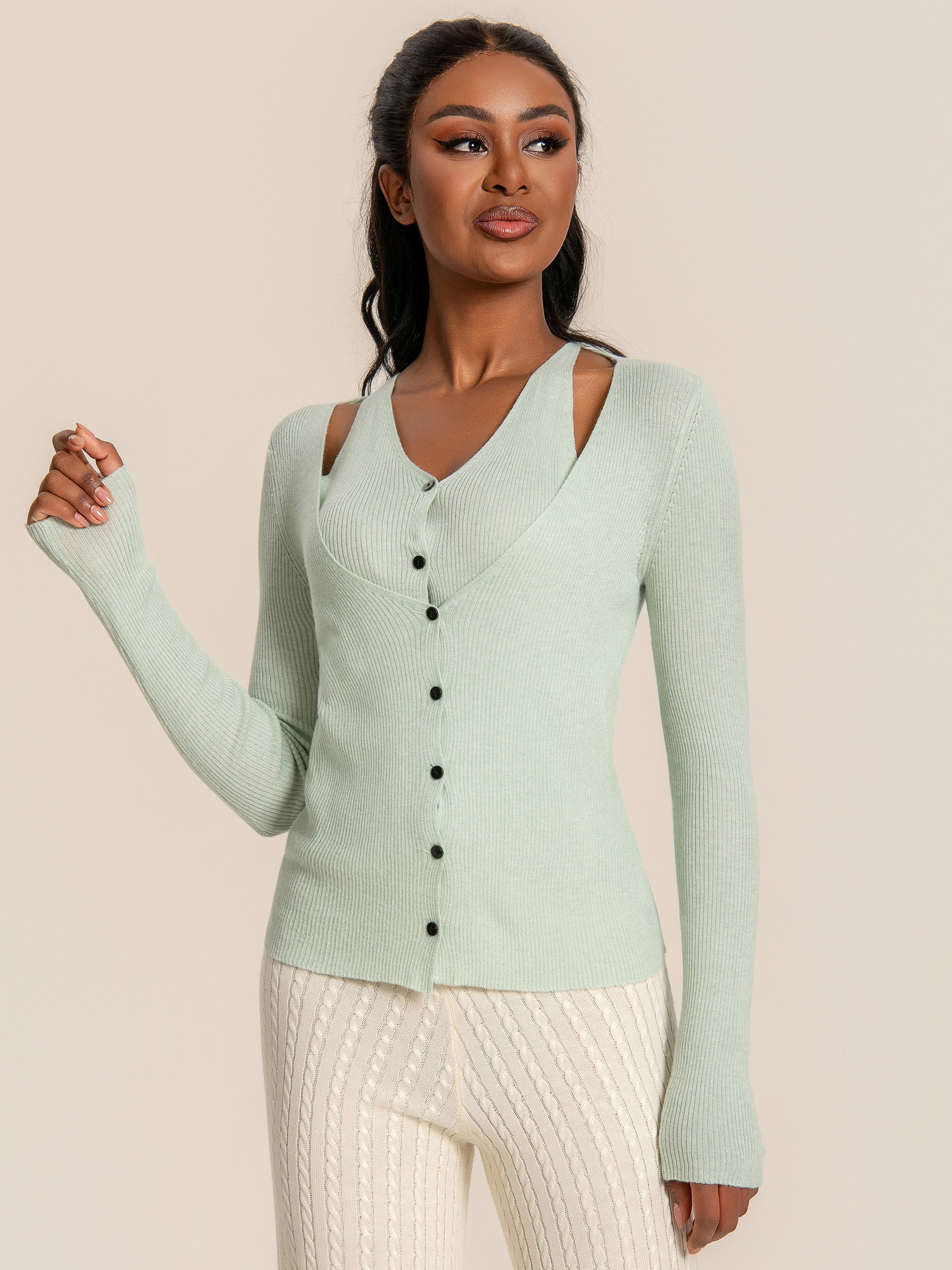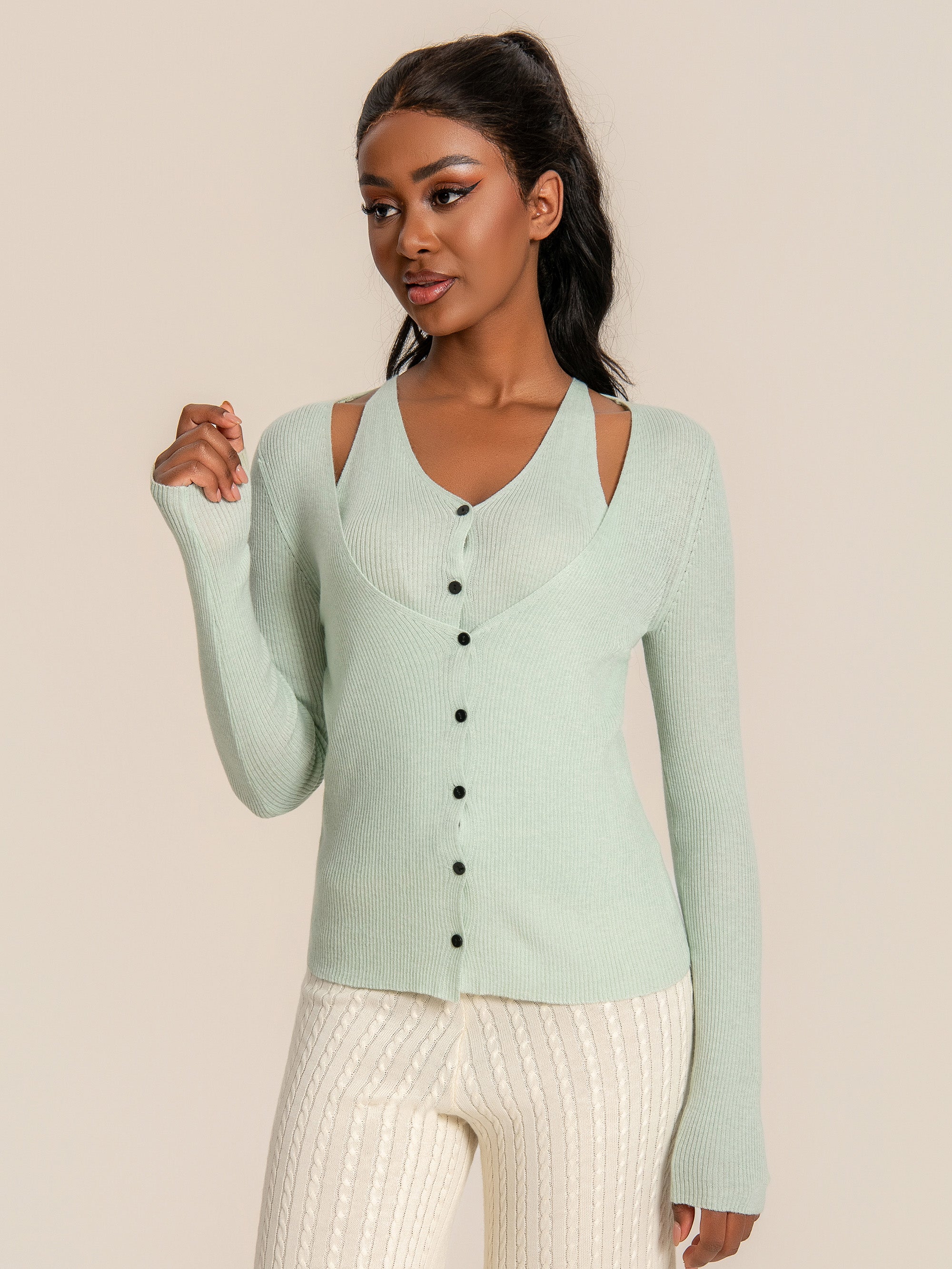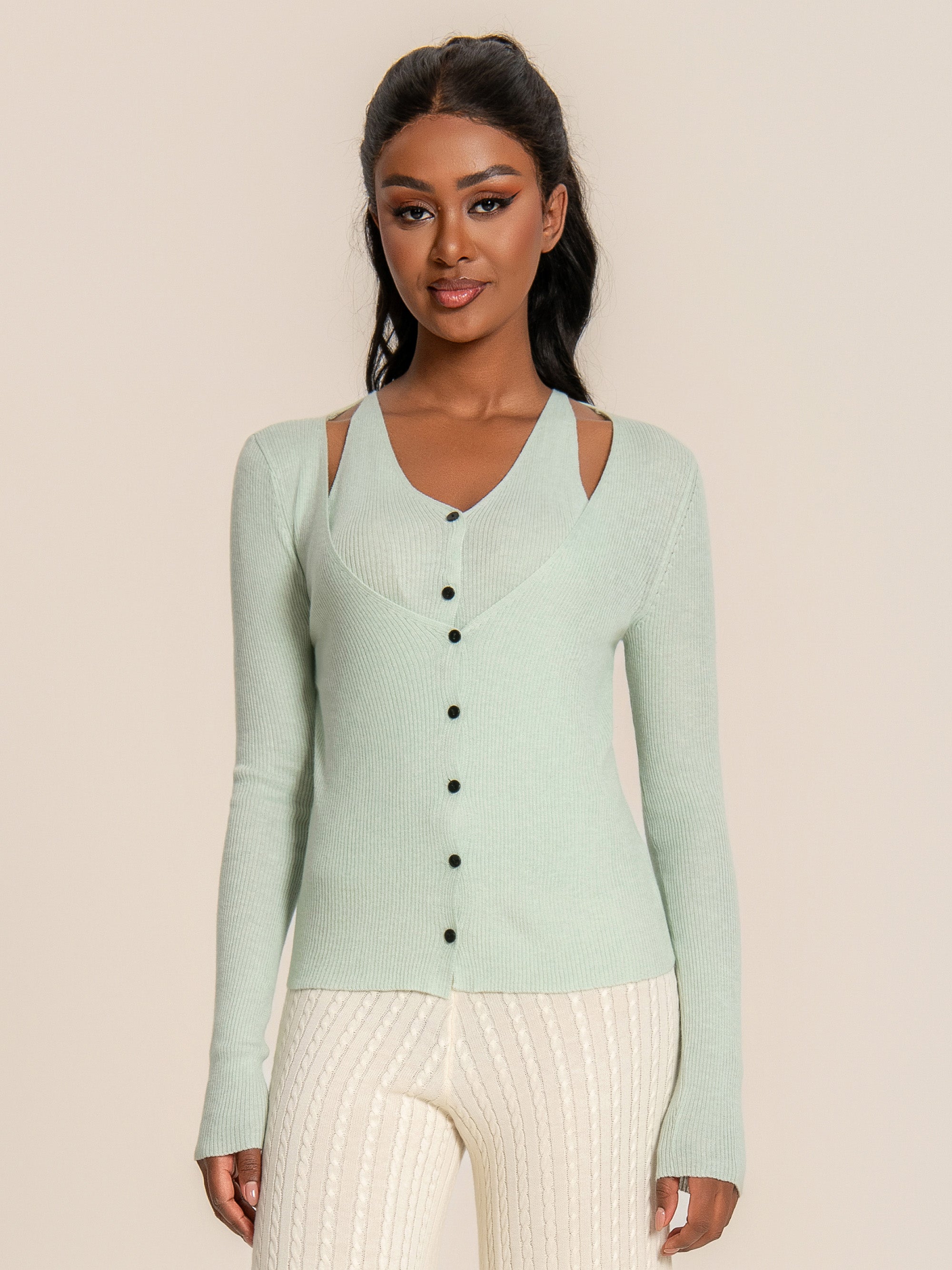 Attached Knit Cami Cardigan